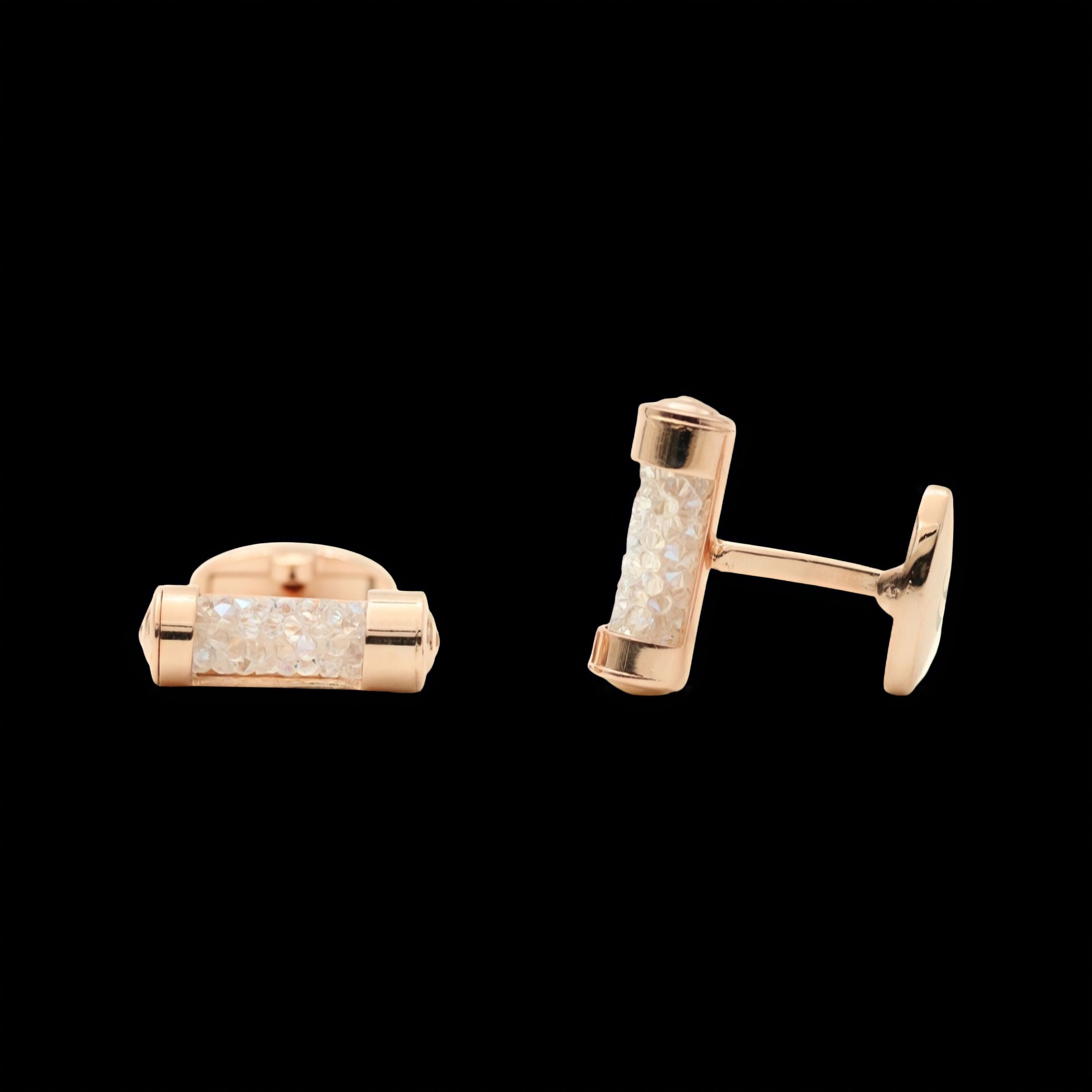 Inlaid with the quality Swarovski crystals and made of 14K rose gold-plated brass, these cufflinks speak style.