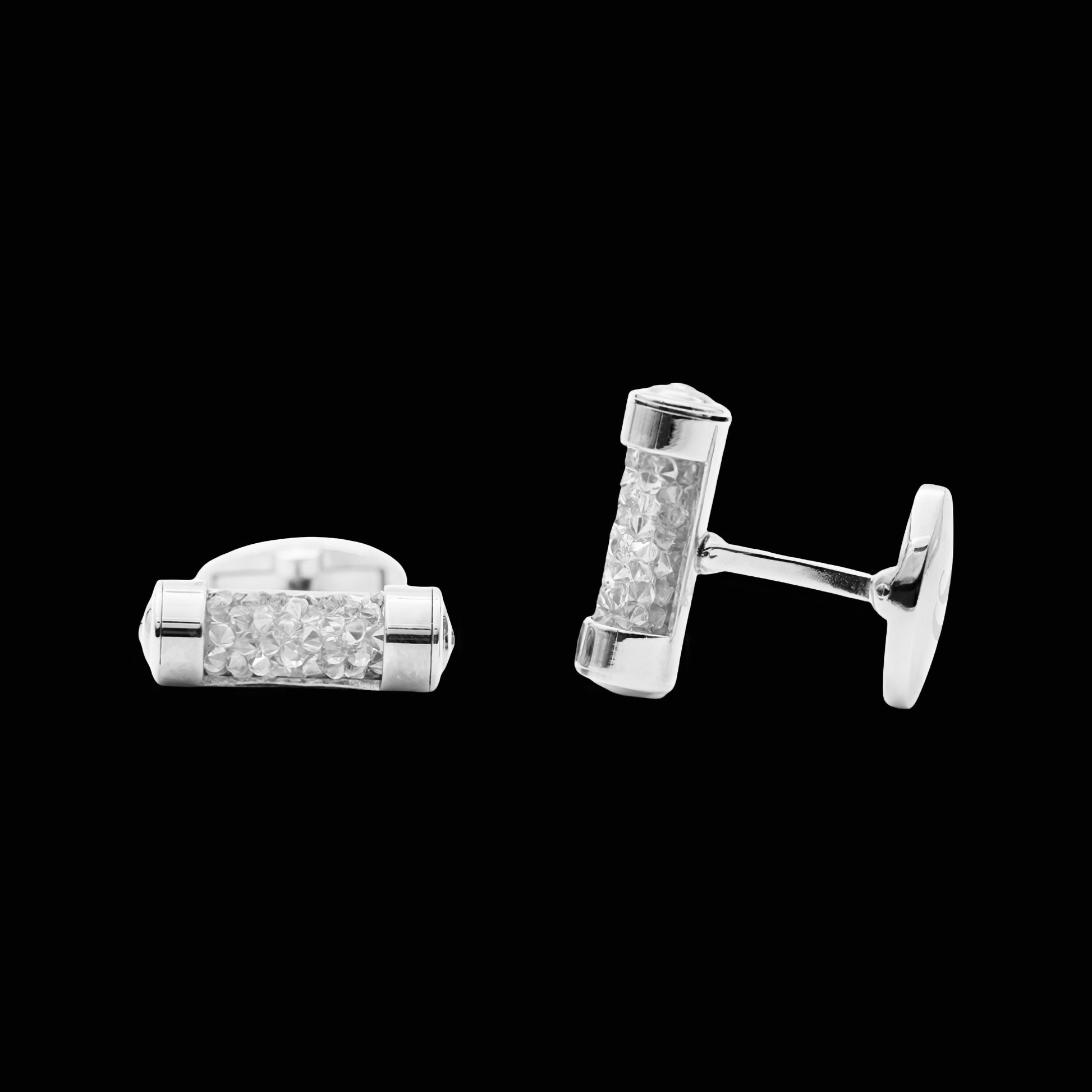 Inlaid with the quality Swarovski crystals and made of 14K white gold-plated brass, these cufflinks speak style.
