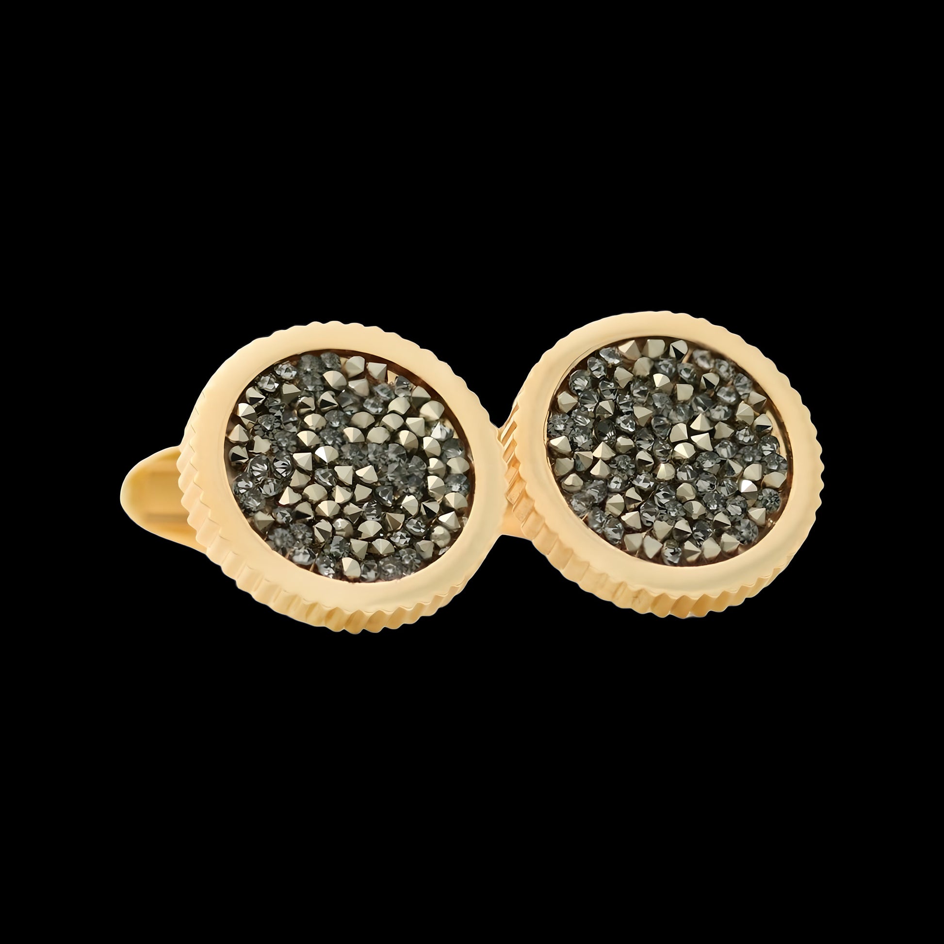 Inlaid with the quality Swarovski crystals and made of 14K gold-plated brass, these cufflinks speak style.