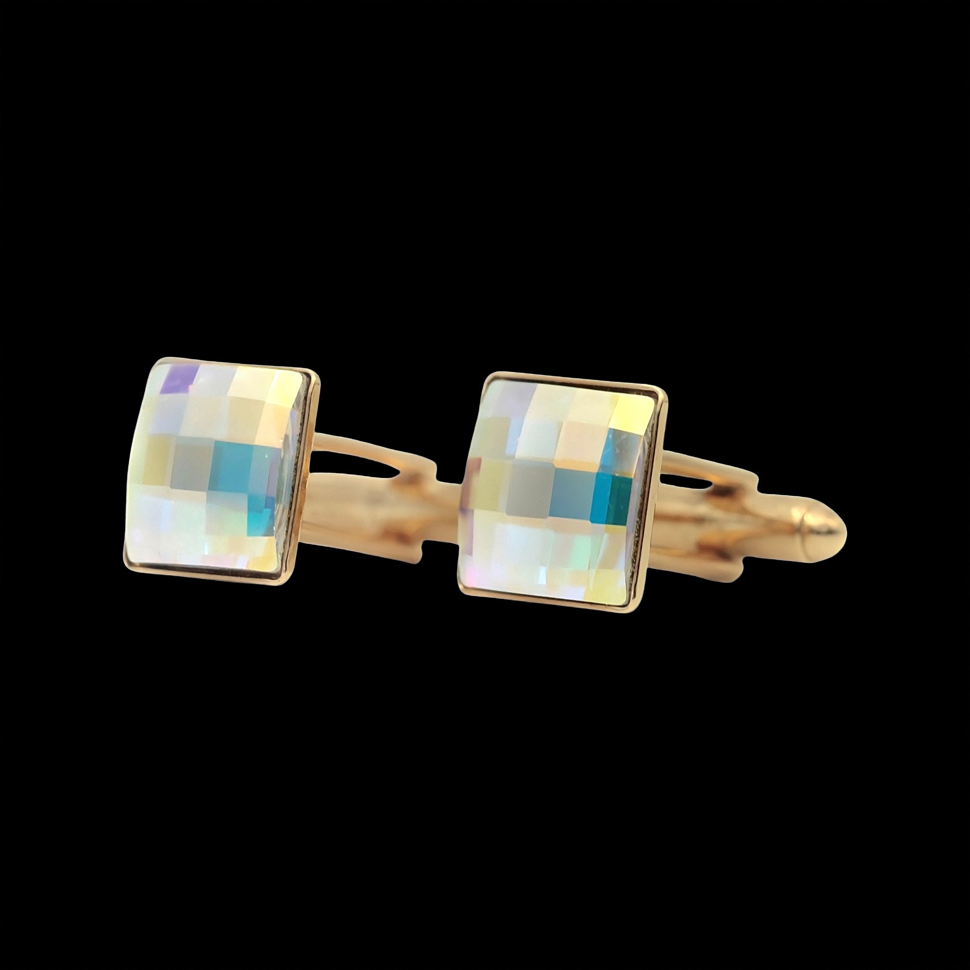Add a touch of class to your outfit with these Swarovski Pixel Crystal cufflinks. Crafted from 14k gold-plated brass, they feature an intricate inlay of Swarovski pixel crystals for a timeless look. Make an elegant statement with this one-of-a-kind accessory.
